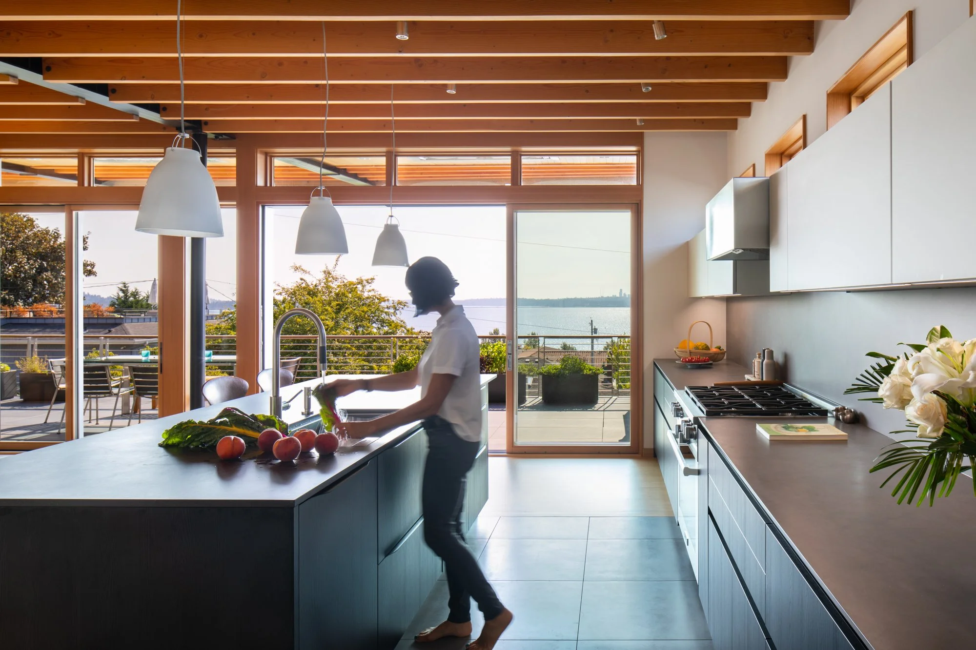 Discover a truly unique kitchen design in this modern Kirkland residence, situated west of Market Street